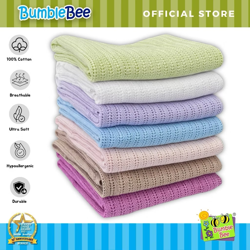 Bumble Bee Cellular Thermal Baby & Toddler Blanket is made from 100% cotton, so it is super soft and perfect for your baby's delicate skin. It's also the best option of bedding for your newborn. This is because the material is made of tiny holes (or cells) that allow air to circulate, ensuring your baby's safety. Bumble Bee Cellular Thermal Baby Blanket should be a top priority of every parent's checklist!