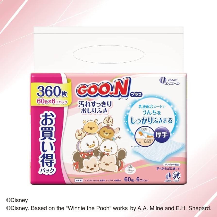 Japan Made Goon Baby Wipes Gentle Standard 70sheets Goon Plus Dirt-Clean 60sheets