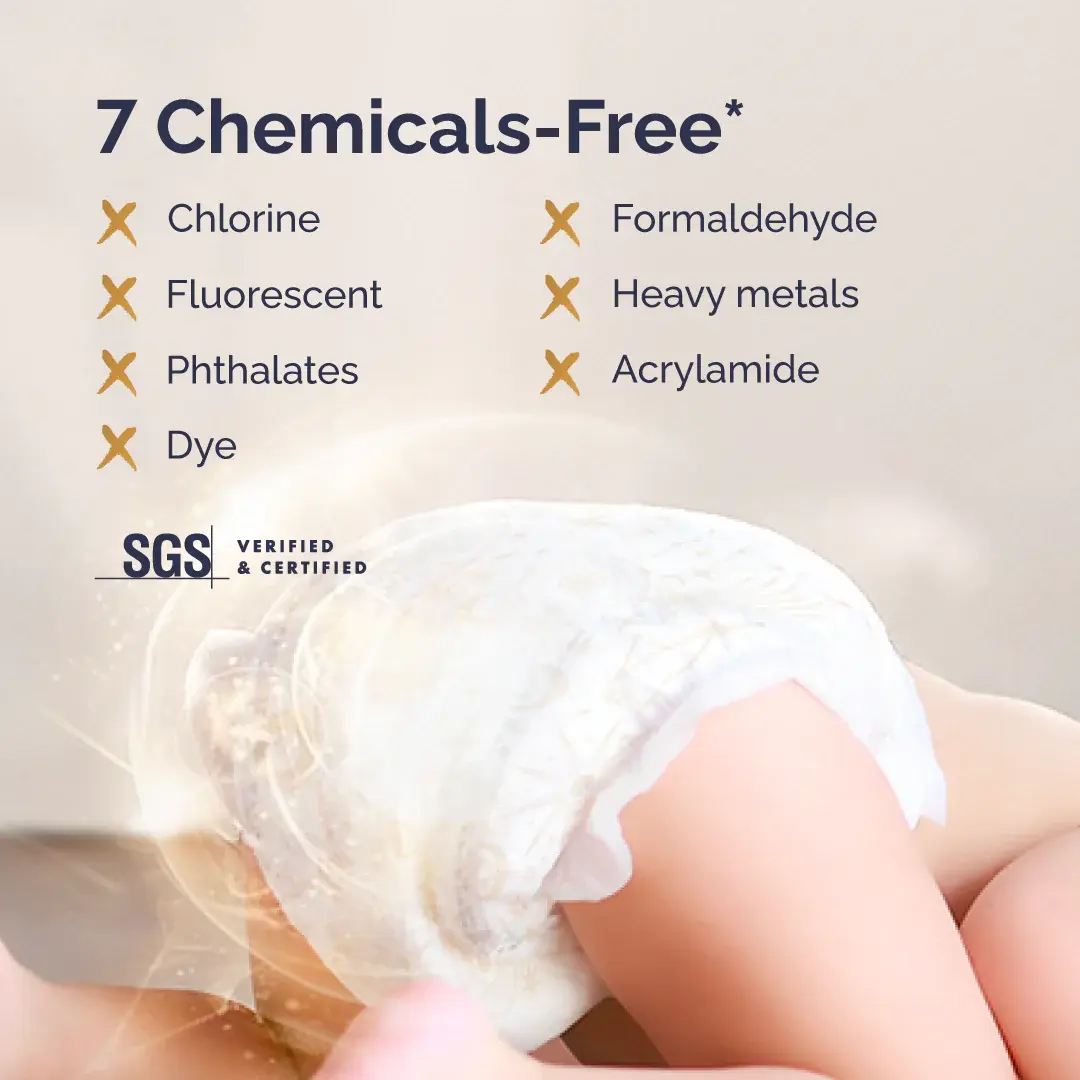 Discover the Softest Premium Diaper with RoyalDream. Specially crafted for newborns and babies with sensitive skin, these diapers offer gentle protection without chlorine or harsh chemicals.