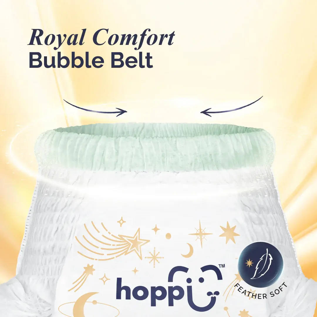 Engineered with fast-absorbing technology, RoyalDream locks in moisture within seconds, providing up to 14 hours of reliable leak protection. The Royal Bubble Belt (Pants) ensures a snug yet breathable fit, while calendula extract delivers a soothing touch for delicate skin.